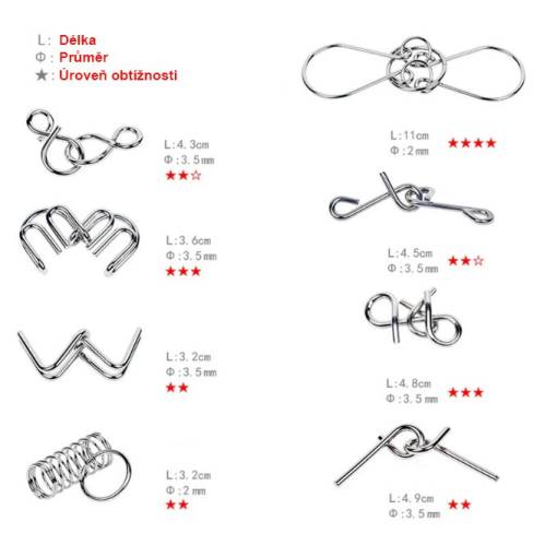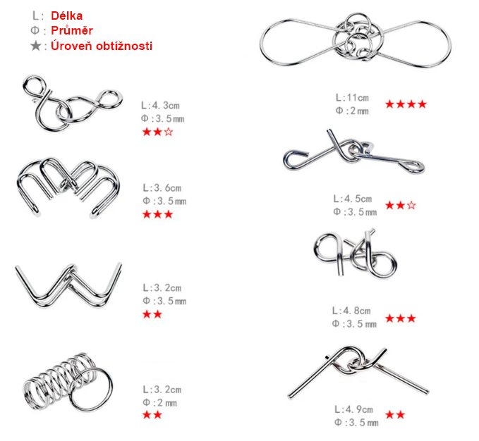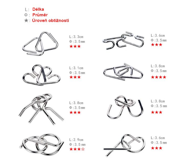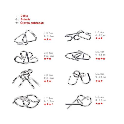 - 8x Kovový hlavolam v jednej sade